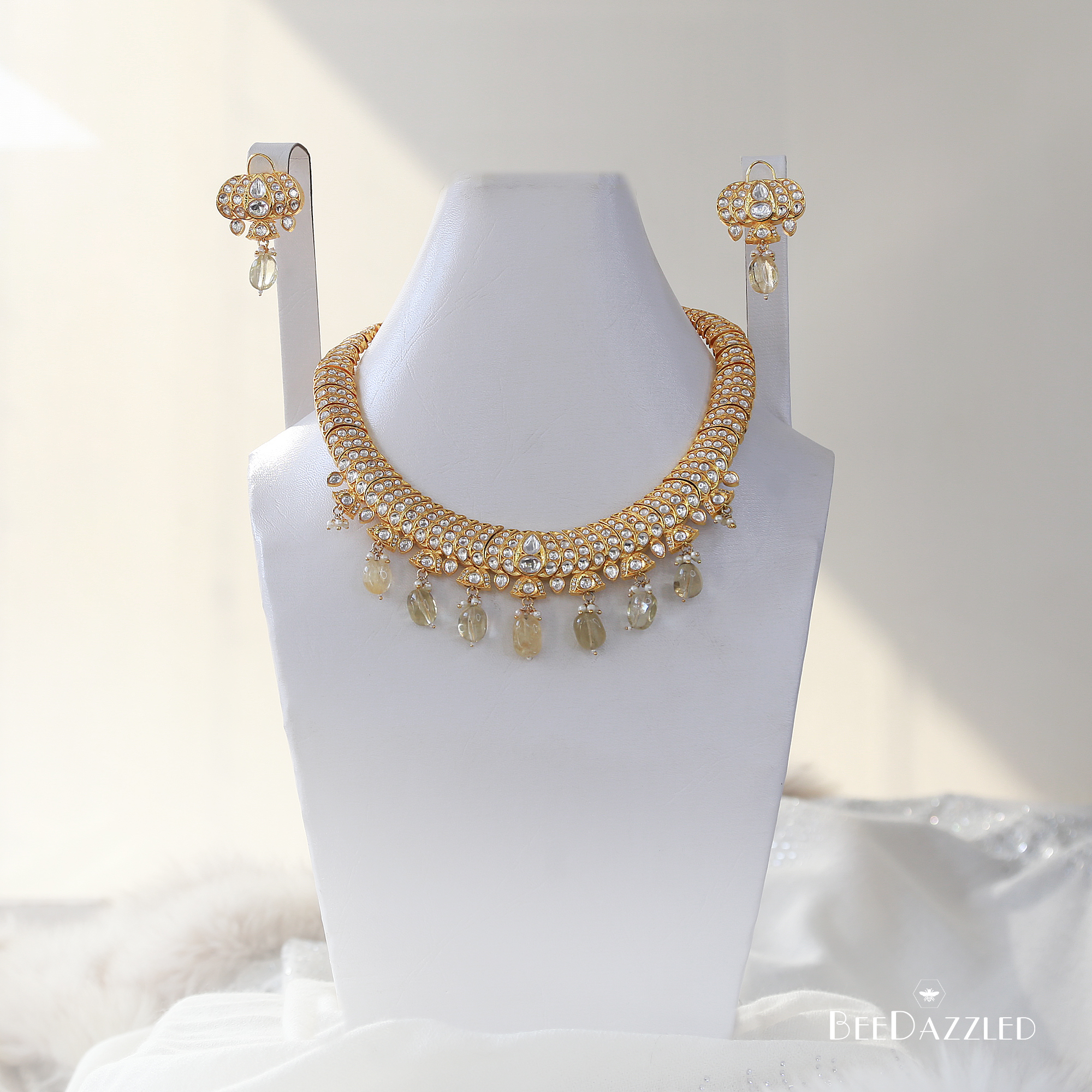22 Karat Gold plated Kundan Set with semi-precious stones