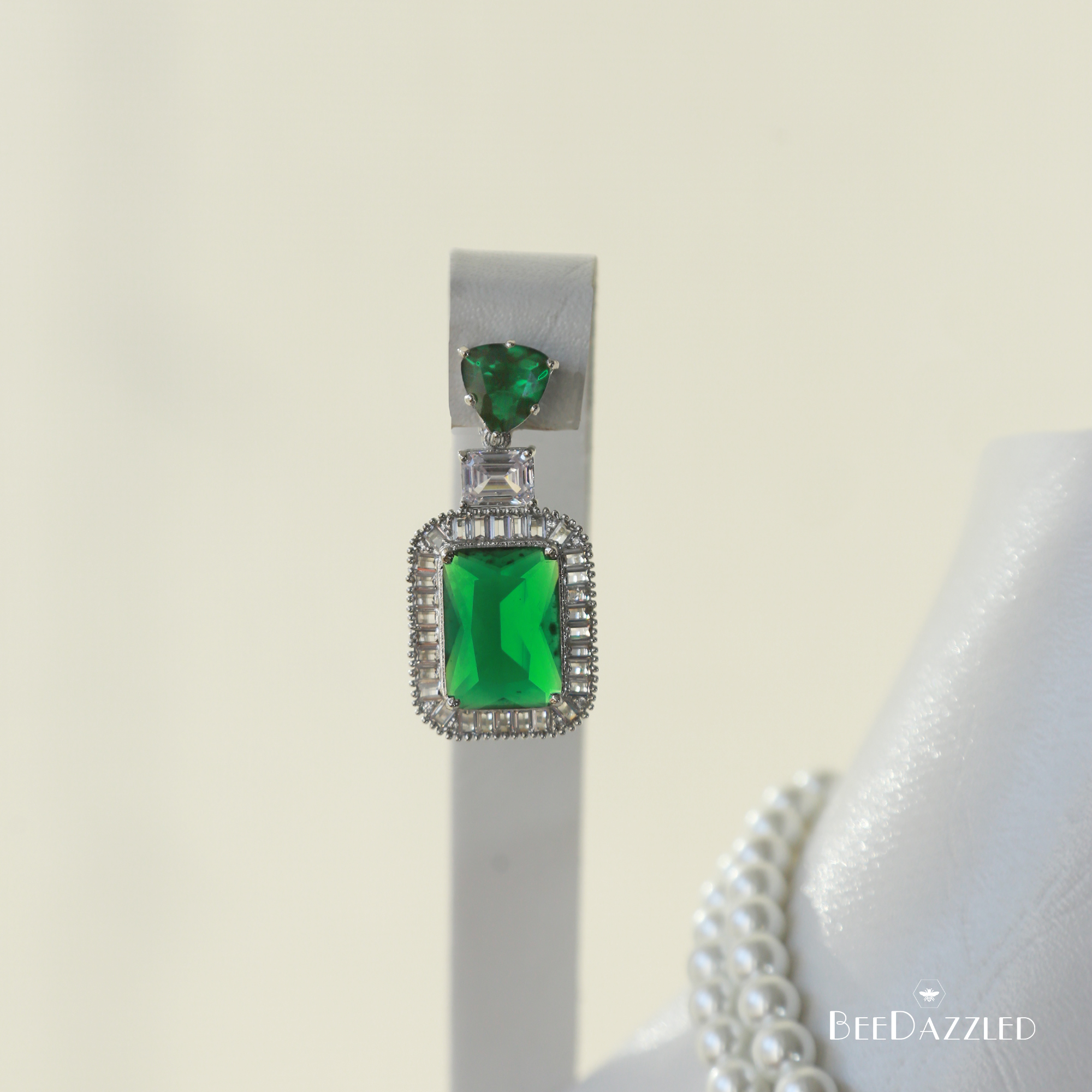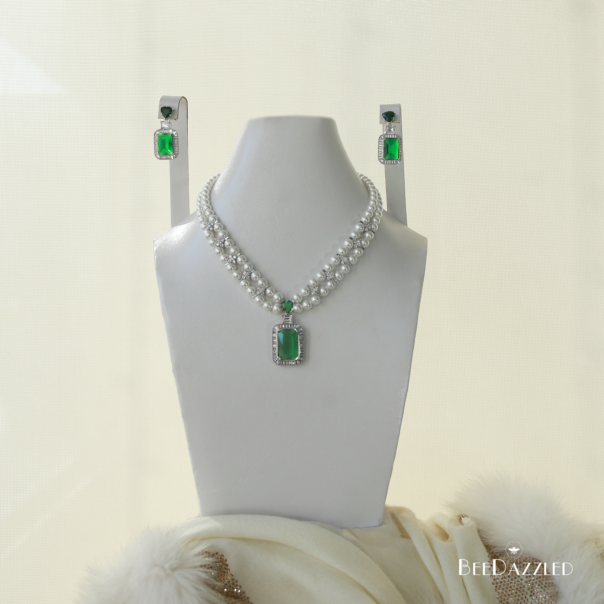 Green Fluorite semi-precious stone on fine silver with zircon diamonds and good quality pearls
